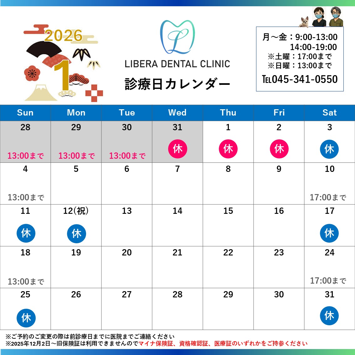 1月の診療日のご案内です🪥ご来院をお待ちしております✨